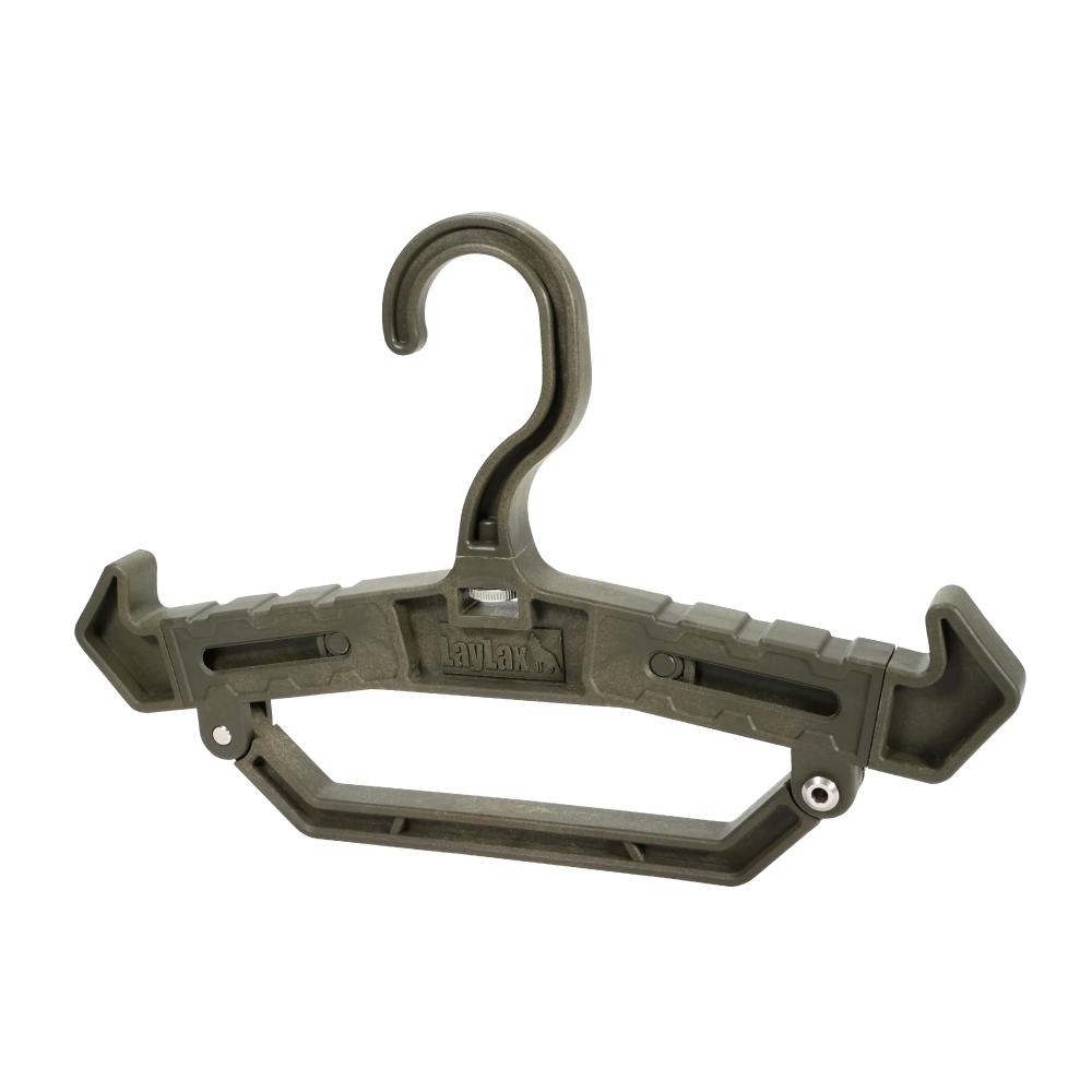 The LayLax Satellite "Heavy Hanger 100" is a the latest version of our reinforced polymer hanger system that allows you to hang your gear on.  The arms are extendable, the hook is adjustable, and the lower hook is removable if needed!  This is a highly versitle accessory for the user or even for stores to do displays!