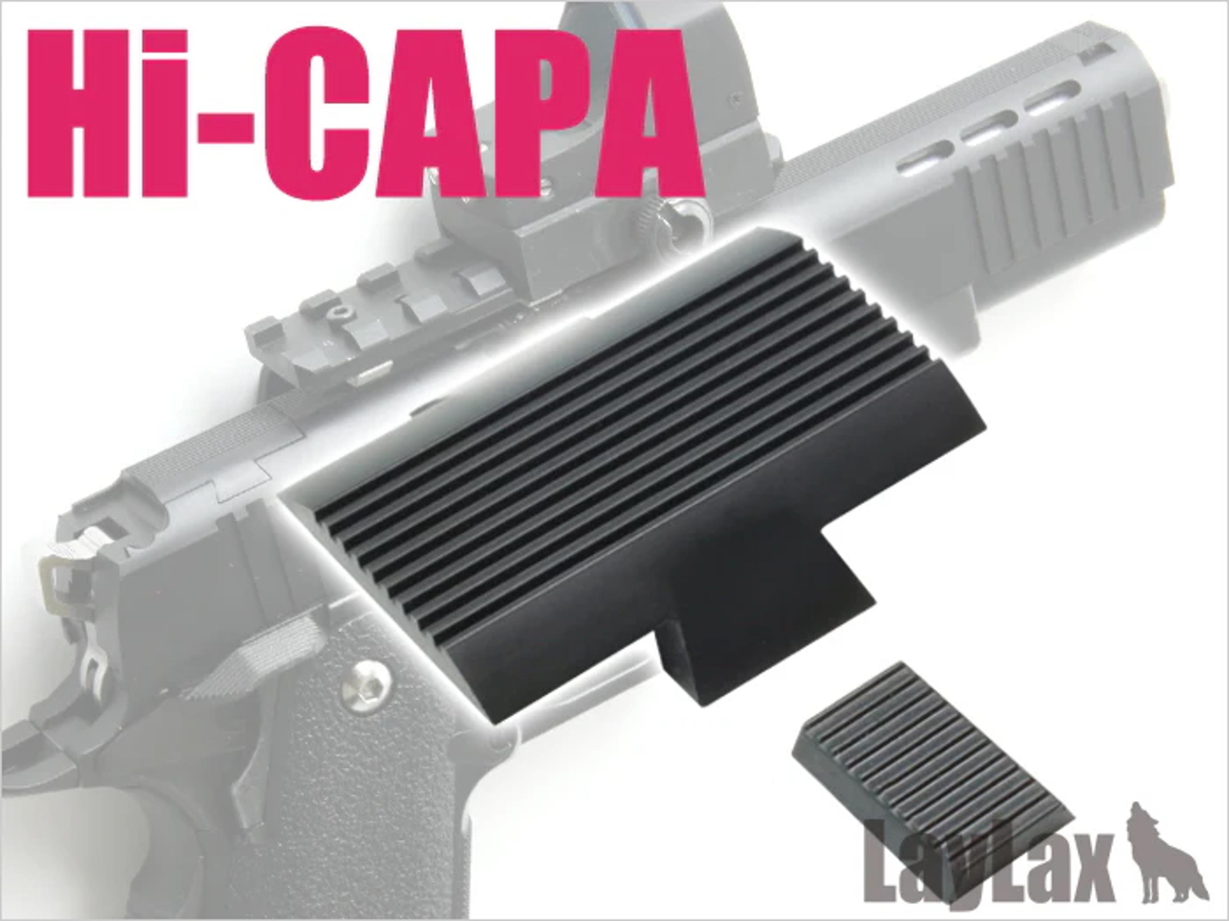The LayLax Nine Ball sight cover set for the Hi-Capa 5.1 is designed to cover up the empty slots left on the slide after removing the front and rear sight.  Easy to install and keeps a consistent design.