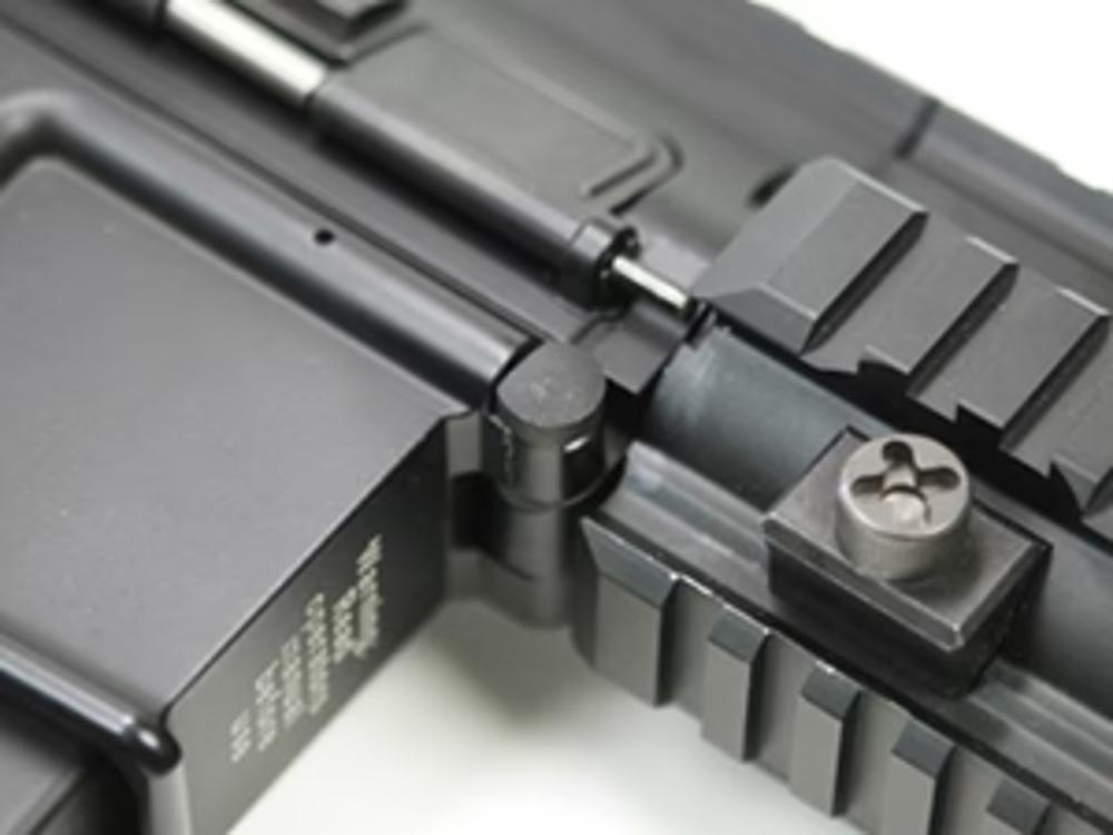 The LayLax First Factory hard frame lock pin is a reinforced locking pin that locks in the upper receiver to the front of the lower receiver.