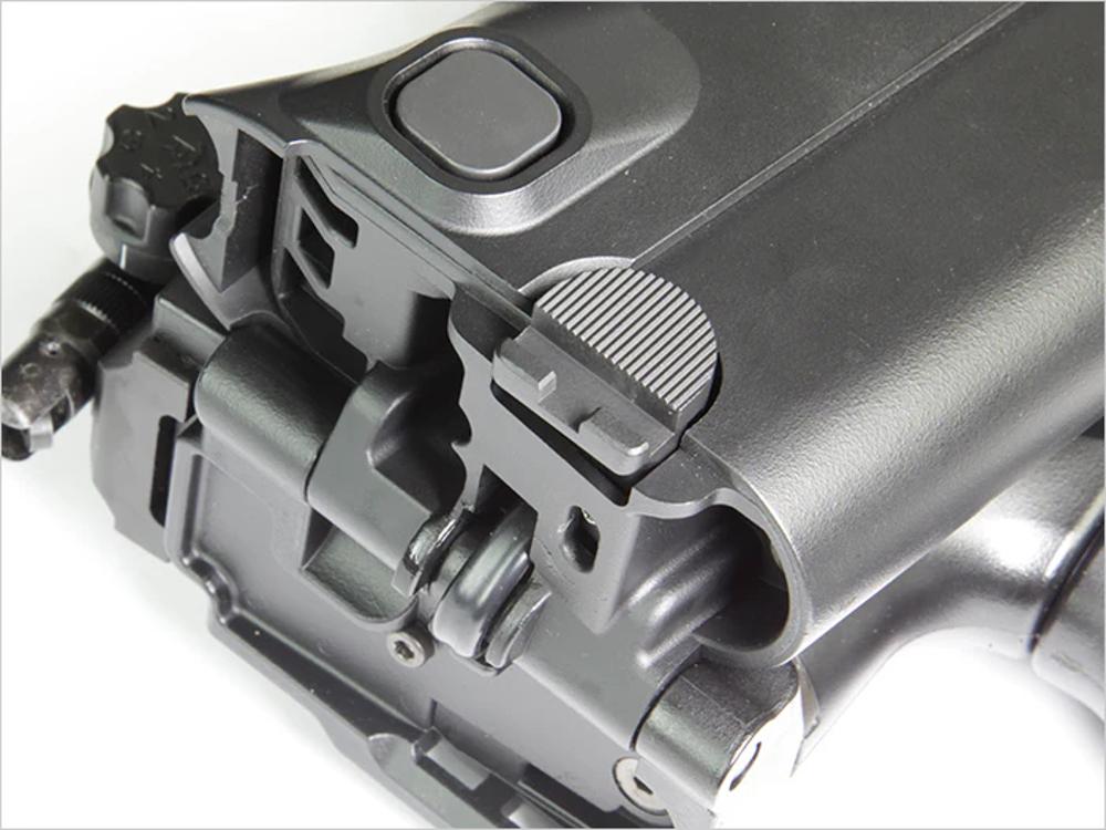 The LayLax First Factory SCAR hard stock button is a high quality upgrade/replacement part for your electric airsoft SCAR.  Our button is reinforced and more robust than the stock part.