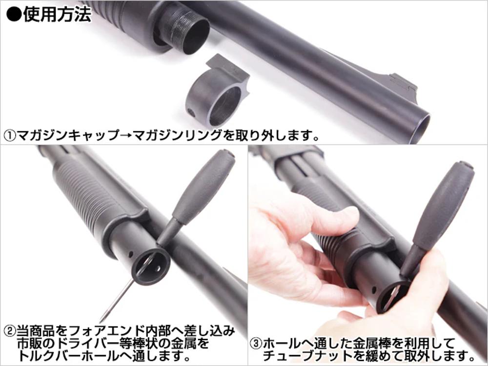 The LayLax First Factory fore end tube nut opener tool is designed to make working on the Tokyo Marui TM870 shotgun easier.