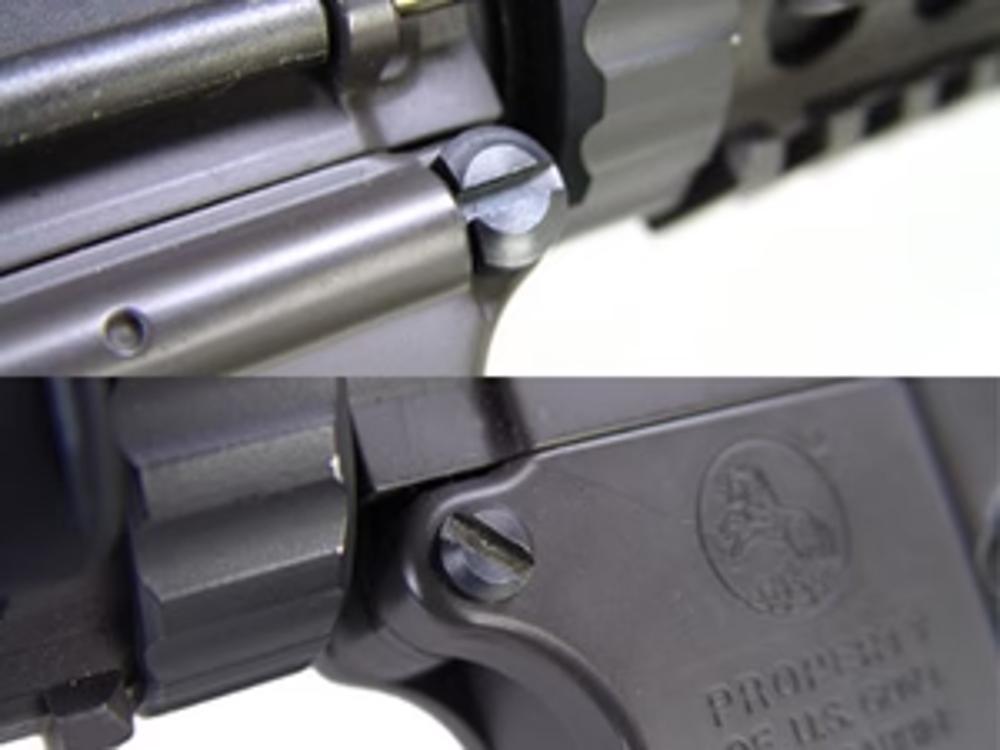 The LayLax First Factory M16 frame lock pins are upgrade / replacement pins for the M16 or M4 platform electric airsoft guns from Tokyo Marui.