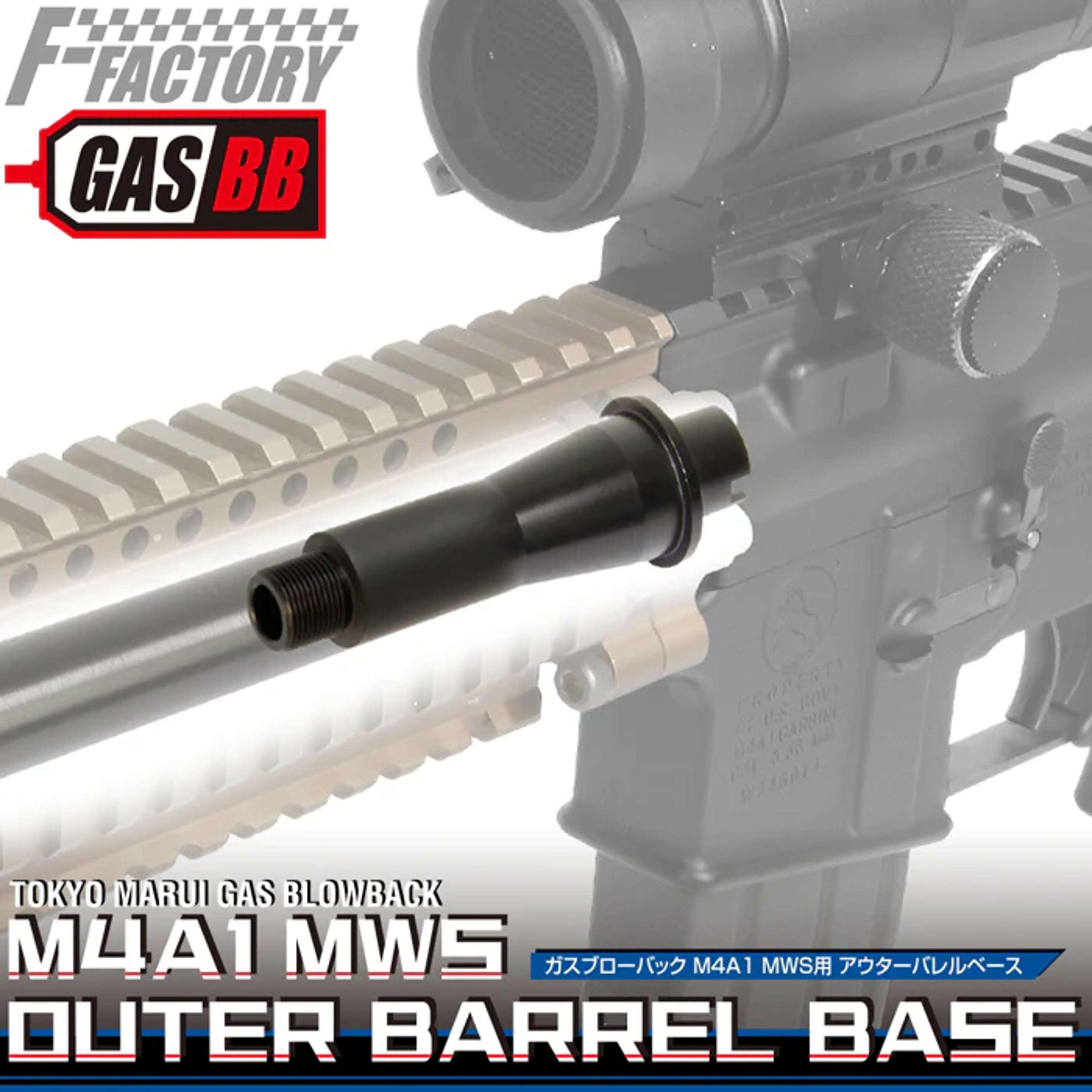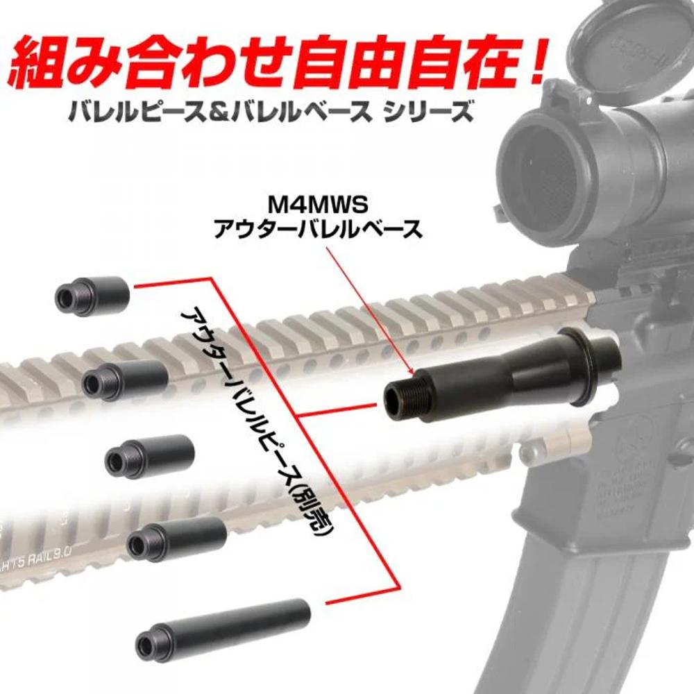 The LayLax First Factory outer barrel base for M4 MWS gas airsoft guns is designed to allow for you to mount other outer barrels at various lengths.