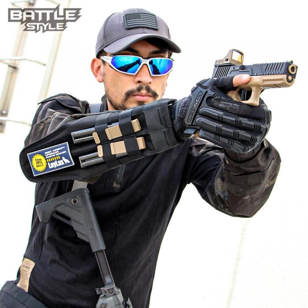 The LayLax Battle Style Gauntlet is probably one of the most unique gear products designed and made by our in-house team.  The Gauntlet is ideal for those that want added protection to your forearm while still having molle and hook and loop.  The Gauntlet can be easily fitted with a turning nob that locks in your arm's size giving you a perfectly snug fit.  This also allows for our Gauntlet to fit a wide variety of arm sizes.